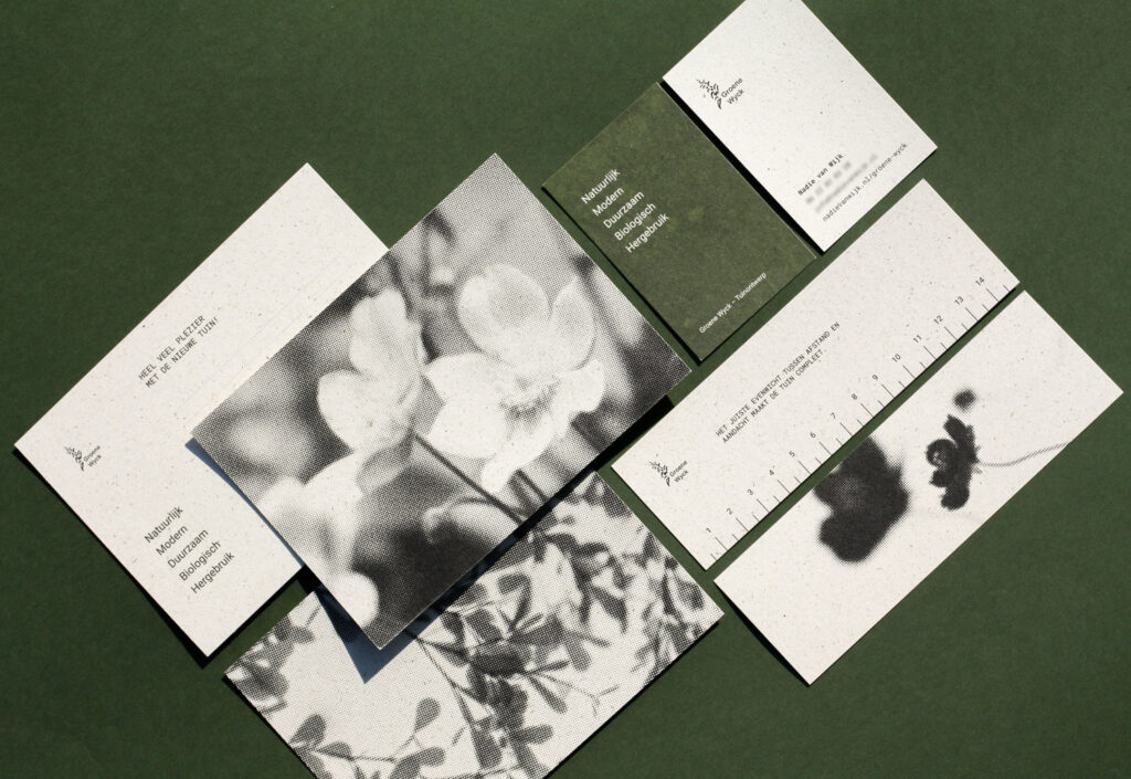 Voor Groene Wyck Tuinen heb ik een visuele identiteit ontwikkeld die aansluit bij duurzame en biologische tuinen. Met handgemaakte illustraties, een passend logo en drukwerk op VoorBIJ-papier creëerde ik een samenhangende stijl die het project een eigen, herkenbare uitstraling geeft.