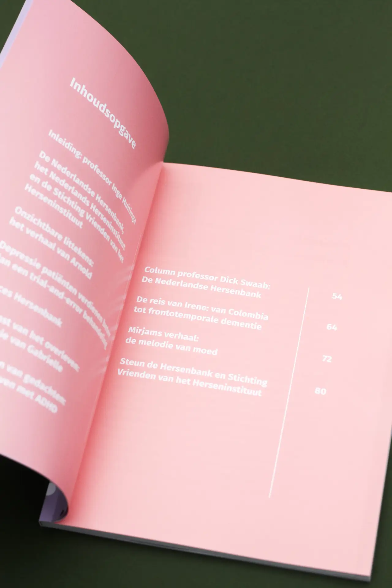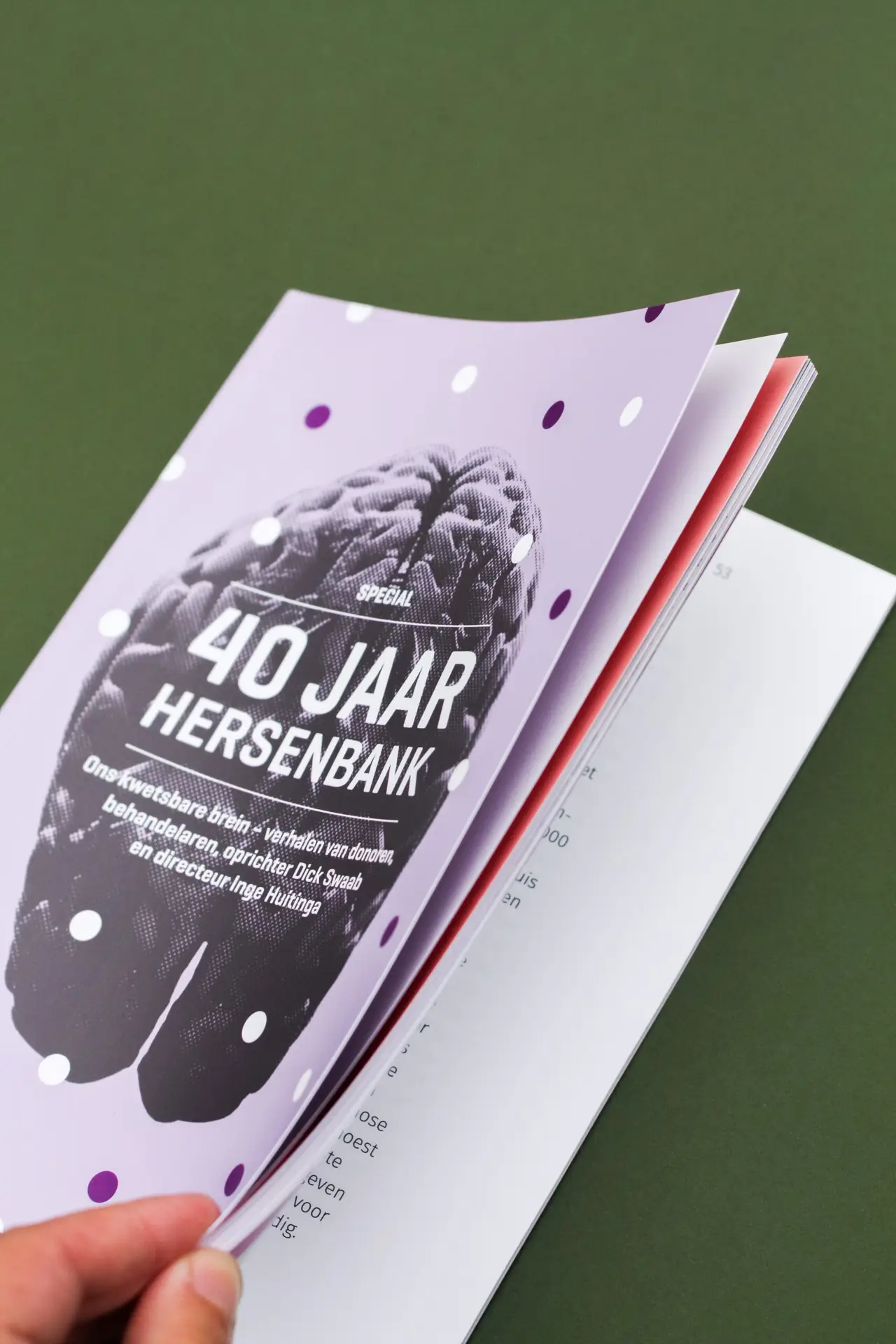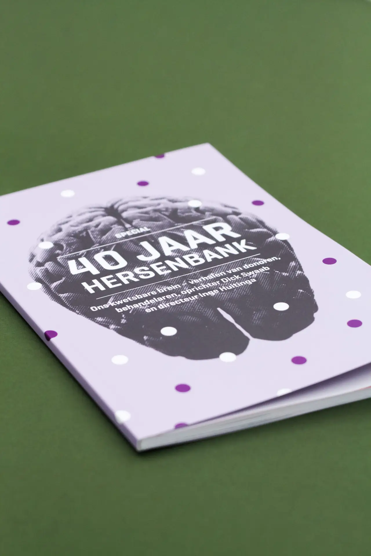 Voor Stichting vrienden van het Herseninstituut ontwierp ik een magazine vol met verhalen ter gelegenheid van het 40-jarig bestaan van de Nederlandse Hersenbank.