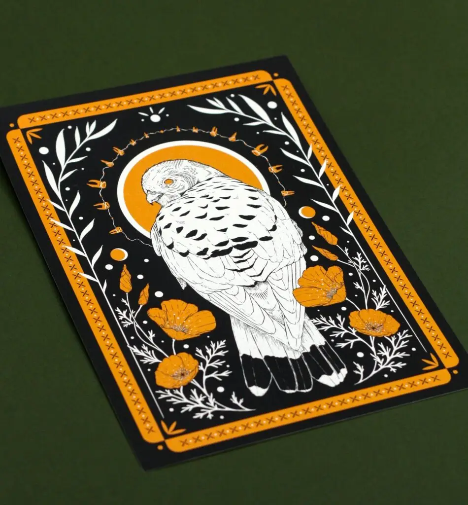 Dit jaar (2025) mocht ik zelf ook een illustratie bijdragen, met als thema ‘California’. Om dicht bij mijn eigen stijl te blijven, koos ik voor een wildlife-benadering en liet me inspireren door de American Kestrel en de California Poppy om tot een uniek ontwerp te komen.